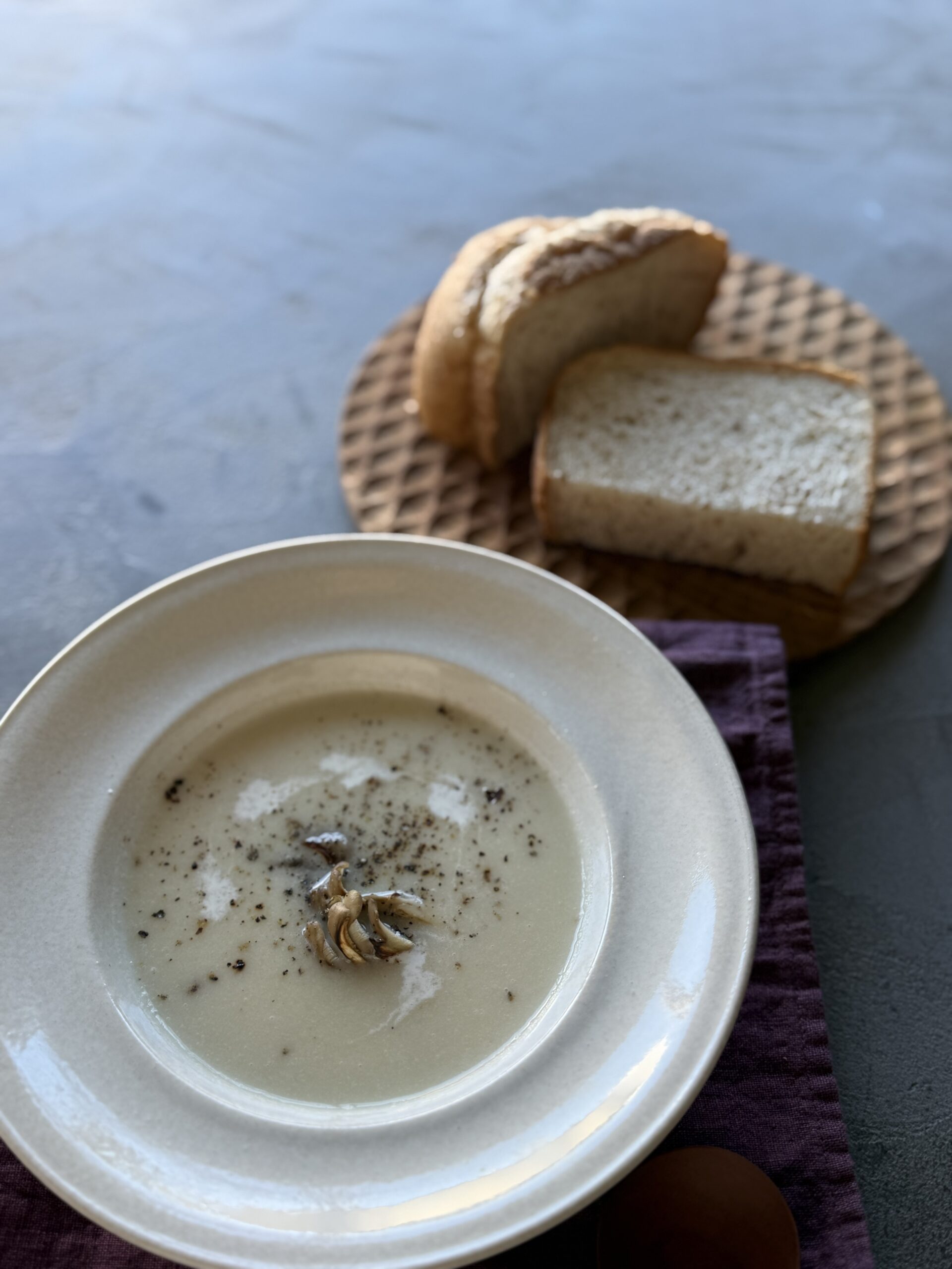 全粒粉の胡麻のパンとカリフラワーのポタージュスープ』を作ります。
